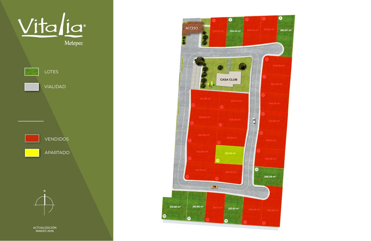 Vitalia Metepec se encuentra en su segunda etapa de desarrollo, dentro del exclusivo complejo residencial Cittadina Metepec, ofreciéndote la oportunidad de invertir tu patrimonio de forma segura en un entorno de gran valor y proyección.